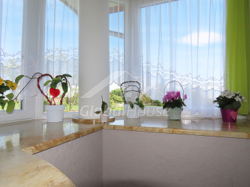 A minőségi anyagok felhasználása megmutatkozik az egész házon végig vonuló márvány hatású kőburkolaton, a fa beltéri ajtókon stb. További előny a jó belső kialakítás, a tökéletesen kigondolt egyedi megoldások.